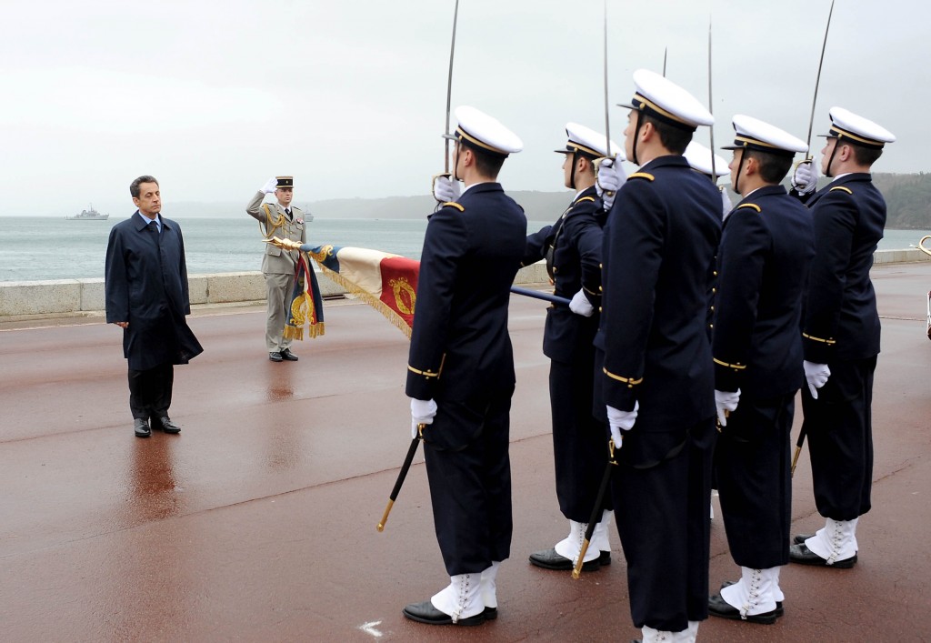 Le Président est en Bretagne, temps gris et humide, du vent dans les voiles et l'imper, un navire au large, et la garde au drapeau de l'Ecole navale. Pt République Voeus aux Armées 2012.pdf37.45 Ko