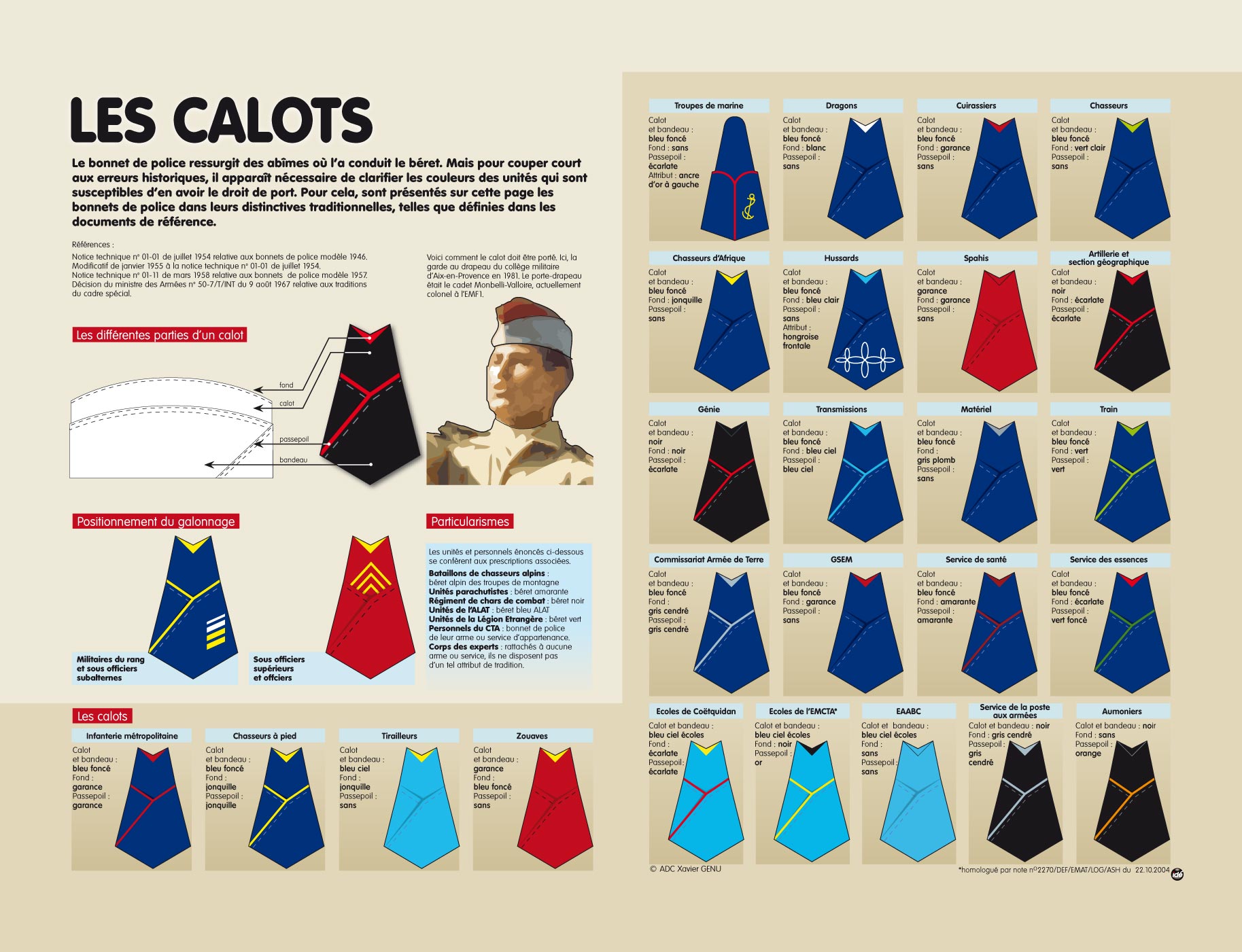 Le calot historique Commissariat armée de terre est décrit dans le fichier attaché.